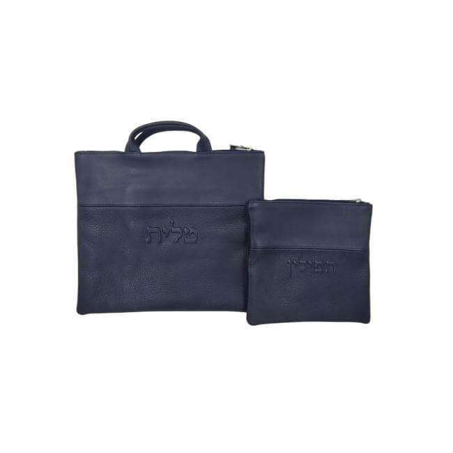 נרתיק לטלית ותפילין מעור אמיתי 100%, עם עיצוב המשלב שני סוגי עורות בגוון דומה, אך עם טקסטורות שונות המבדילות בין החלק העליון לתחתון.